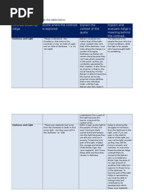 Because the premier is soon to visit india to learn from the nation's burgeoning culture of entrepreneurship, balram has decided to share his own story of entrepreneurial success. I'm a man of action and change. Light and darkness in the white tiger; Balram poses india as broken up into two sections, the darkness and the light. From the creators of sparknotes.